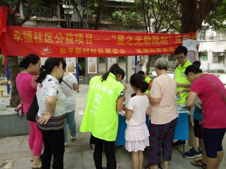 在啪啪啦 、广州市财政局2013-2015年广州市幸福社区公益项目资助计划下,南源街家庭综合服务中心成功两年获得幸福社区公益项目的资助。2014年9月是南源街家庭综合服务中第一服务阶段的第二年度,根据距离服务中心的远近,服务策略上分为三个服务阶梯,第二年度为重点服务第二阶梯并向第三阶梯过渡的阶段。和平新村社区属于服务的第三阶梯,申请和平新村幸福社区公益项目,与中心的整体服务策略相匹配。此外,分析和平新村社区的人口特点以及南源街各领域需求调研情况,计划申报“星之光助残站”互助计划。