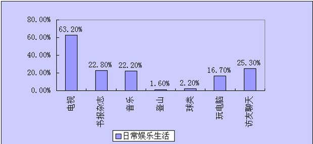 残障人士娱乐活动少,休闲娱乐活动比较单一。2013年的调研数据中61.5%的人不经常参加休闲娱乐活动,30.8%的人参加社区活动一般,7.7%的人比较经常参加,有8.3%的人很少参加。在休闲娱乐中,有63.2%的人是在家看电视,25.3%的人是和朋友聊天,22.8%的人是读书看报(见图2)。从中可以看出,残障人士日常的娱乐活动较少,休闲娱乐活动比较单一。因此,丰富社区生活,为社区残障人士提供参与社区娱乐活动,是我们工作的方向之一。